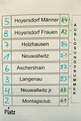 | ... die Siegerehrung mit der Neuwallwitzer Jugend, den Langenauern, dem Montagsclub Schweikershain-Holzhausen 86 und den siegreichen Neuwallwitzern ... | |||||