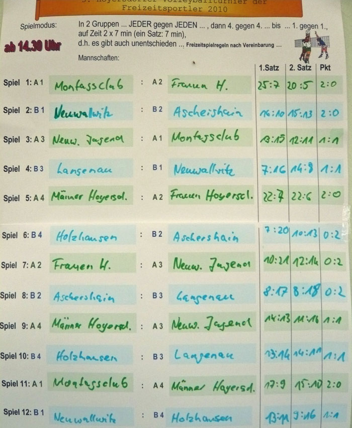 Rückblick auf das 1. Hoyerdorfer Volleyballturnier | Ein großes Dankeschön geht an alle Organisatoren, Aufbauhelfer, Grillmeister, Schiedsrichter, Fotografen, Tontechniker ... | Rückblick auf das 2. Hoyerdorfer Volleyballturnier | ![]() |